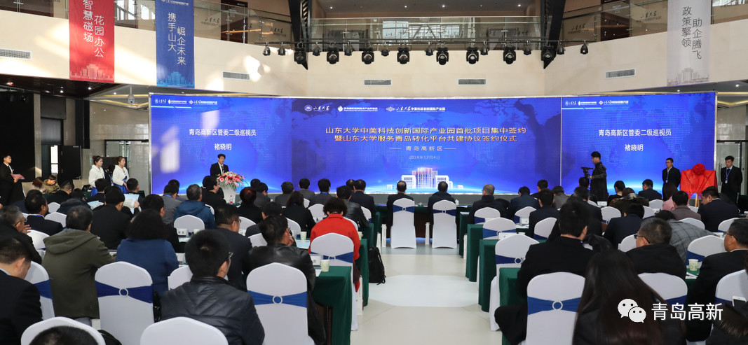 12月4日上午,山东大学中美科技创新国际产业园项目入园集中签约暨山东大学服务青岛转化平台共建协议签约仪式在青岛高新区举行。博新肿瘤相关物质检测项目等首批10个研发产业化项目、山东大学微生物研究院等5个山东大学服务青岛转化平台项目集中签约落户青岛高新区。青岛市政府党组成员,红岛经济区、青岛高新区工委书记王作安,山东大学党委副书记、青岛校区党工委书记张永兵出席签约仪式,并为落户青岛高新区的山东战略新兴产业研究院揭牌。